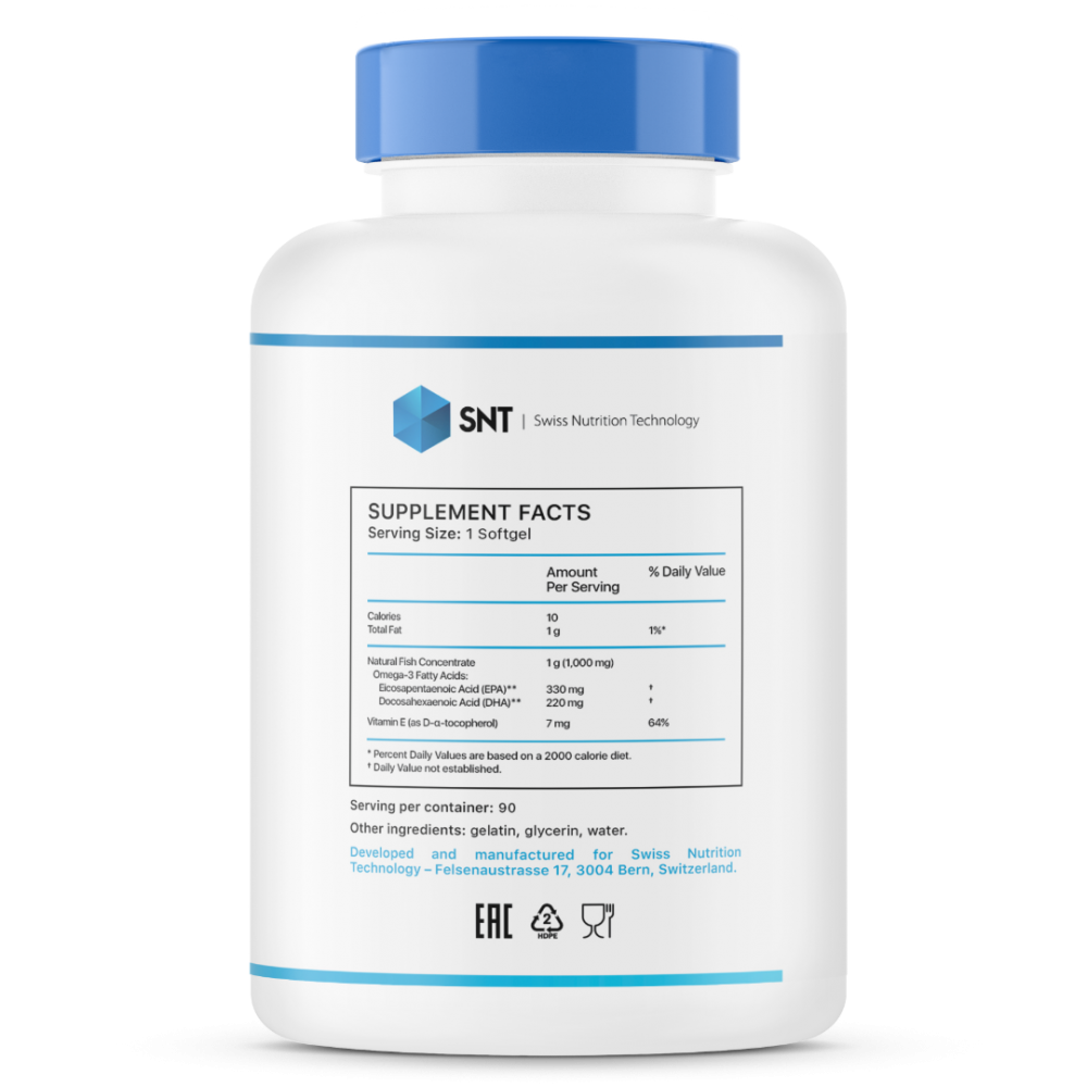 Омега-3 жирные кислоты обеспечивают нормальную работу иммунитета, играют важную роль в обменных процессах и помогают поддерживать хорошую физическую форму. Каждая капсула препарата содержит 330 мг эйкозапентаеновой кислоты (ЕПК) и 220 мг докозагексаеновой кислоты (ДКГ).